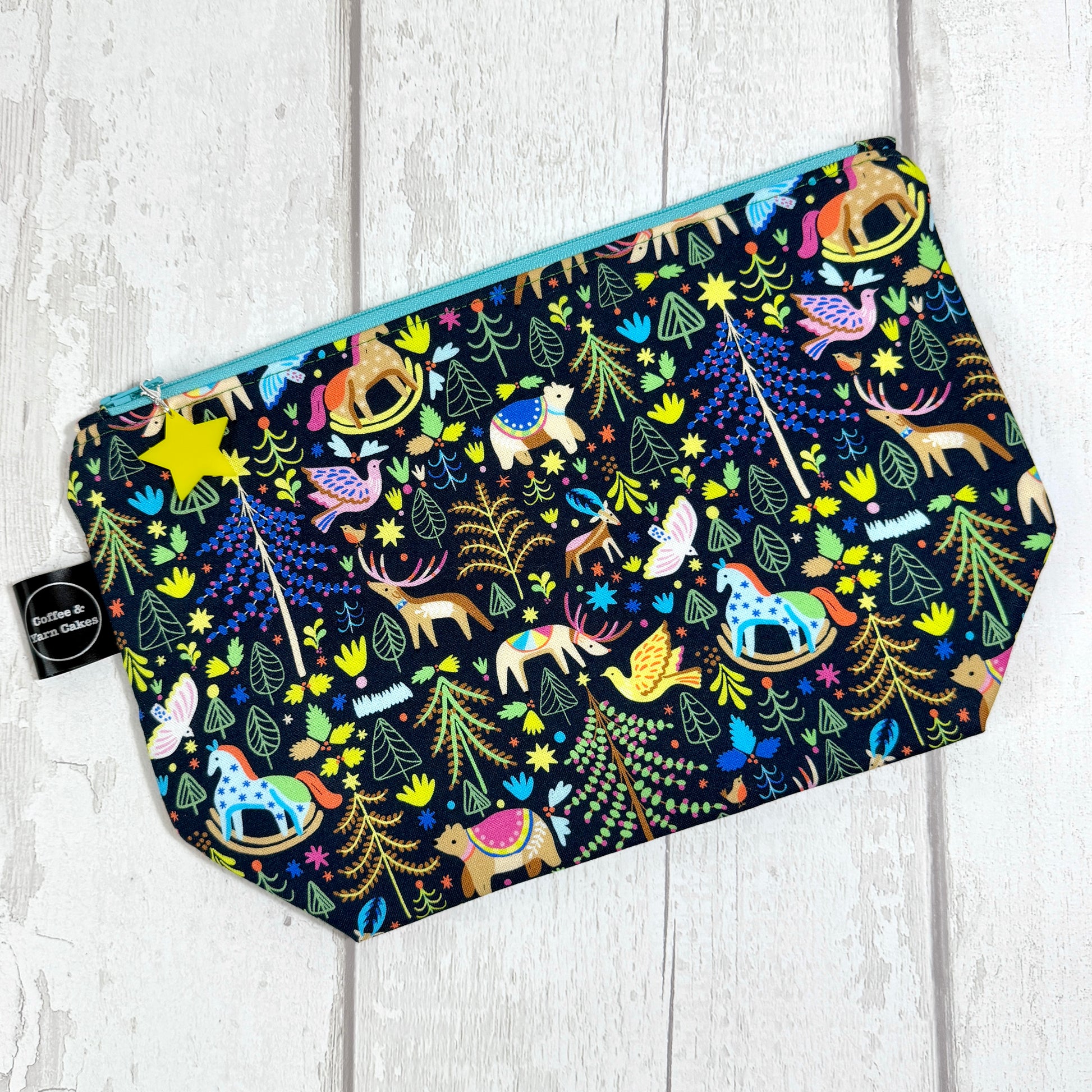 Blitzened is the most amazing whimsical design with fir trees, bears, stars, rocking horses, deers, doves...the perfect fabric for Winter and Christmas projects. Lined with a beautiful coordinating star fabric