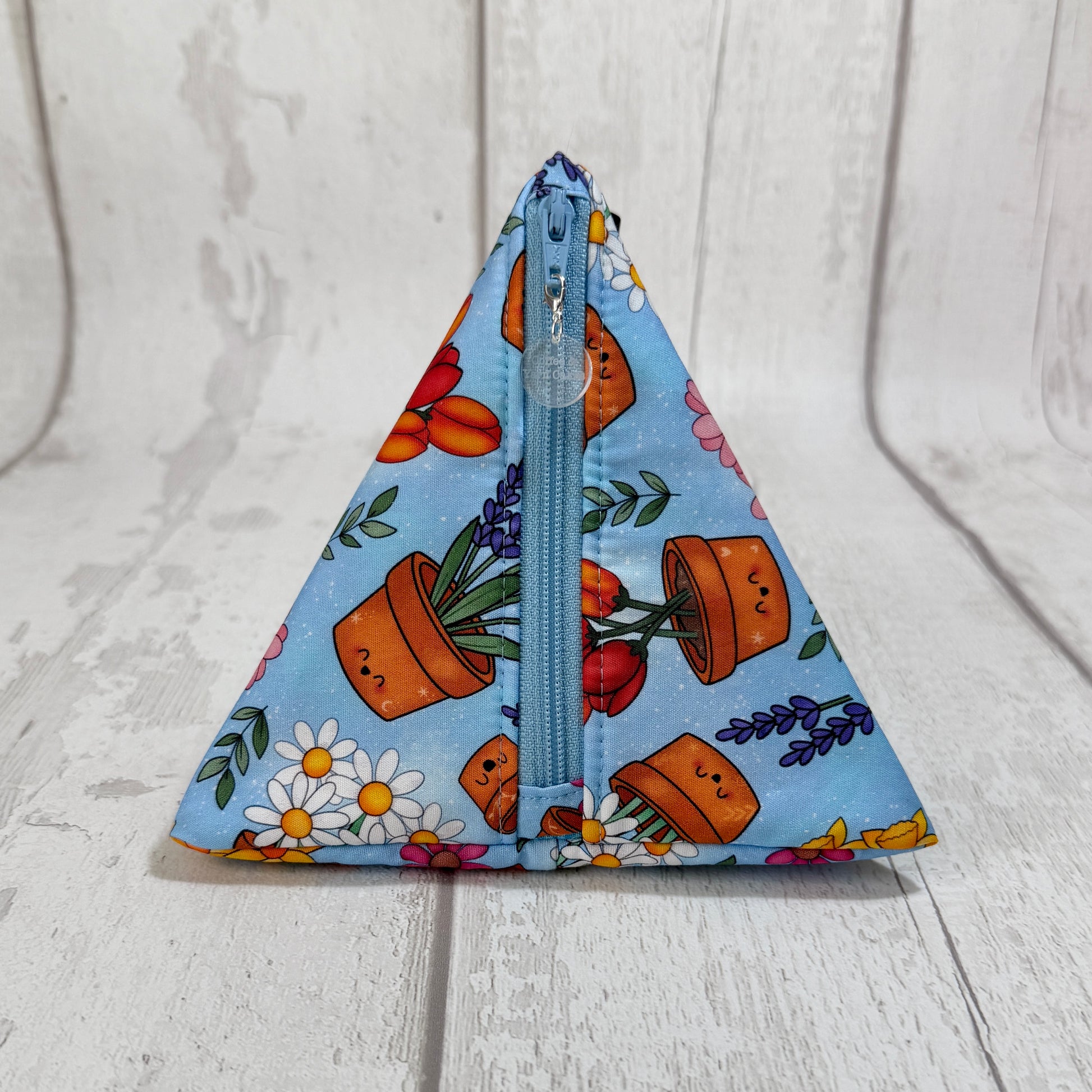 Happy Plants Zipped Fabric Pyramid Notions Pouch